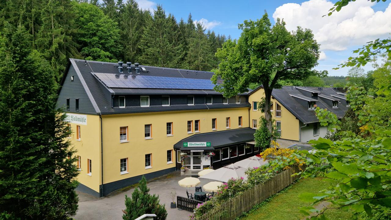 Umgeben von Wald und Fels liegt unser Hotel-Restaurant "Waldmühle" an einem Ausläufer des romantischen Zschopautals, in der unmittelbaren Nähe der Bergstadt Wolkenstein und des Kurortes Warmbad mit der "Silbertherme" (750m). Erbaut wurde das Gebäude im Jahre 1873 und ist seitdem in Familienbesitz.
